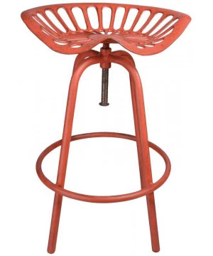 Tabouret tracteur en métal rouge patiné : 50 x 47 x 70 cm