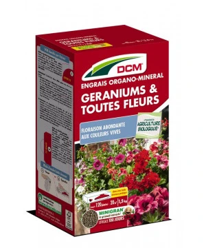 Le produit ENGRAIS GERANIUMS-JARDINIERES 1.5KG – DCM est proposé par