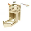 Il y a Ă©galement un kit en bois complet, un jeu de fixations mĂ©talliques, un ensemble d’outils d’installation, des instructions d’installation « étape par Ă©tape » avec les règles de sĂ©curitĂ© lunette, un volant, des roches pour le mur d’escalade et une corde d’escalade, 2 sièges rouge avec crochets.