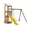 Équipé d’un: toboggan vert de 2,2 m, un ancrages au sol, un jeux de poignées des capuchons, un bac à sable avec 2 sièges, une échelle avec des barreaux métalliques, un Kit de bois complet, un ensemble de connecteurs métalliques, un ensemble d’outils d’installation ainsi que des instructions d’installation « étape par étape » avec les règles de sécurité. Vous pouvez également retrouver un kit de crochets pour la balançoire avec 2 sièges rouge et des roches pour le mur d’escalade.