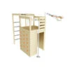 Il y a Ă©galement un ensemble d’outils d’installation, des instructions d’installation « étape par Ă©tape » avec les règles de sĂ©curitĂ©, une lunette, un volant, une maisonnette avec un toit Ă deux versants, portes et volets et pour finir des roches pour le mur d’escalade avec un trapèze.